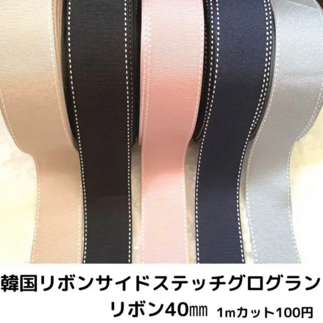ワンランク上のアイテムを演出する韓国リボンサイドステッチグログランリボンが新登場!厳選された高品質なステッチグログランリボンで、40㎜の太さが存在感を引き立てます。洋服や小物、ヘアアクセサリーにも幅広く活用でき、おしゃれ度をグッと引き上げます。手に取った瞬間、上質さを感じていただけることでしょう。